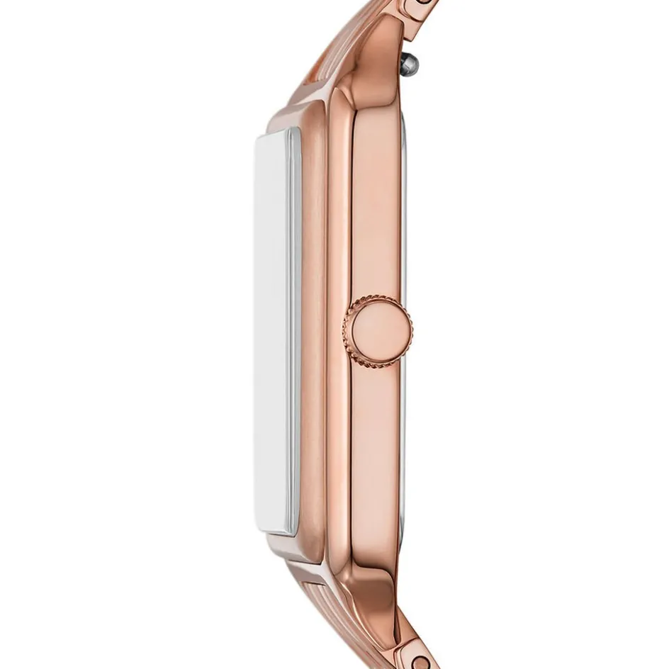 Montre Fossil Raquel Acier Rosé Rectangulaire Quartz 26mm Fond Brun Nacre Strasse Bracelet Acier Rosé Es5323