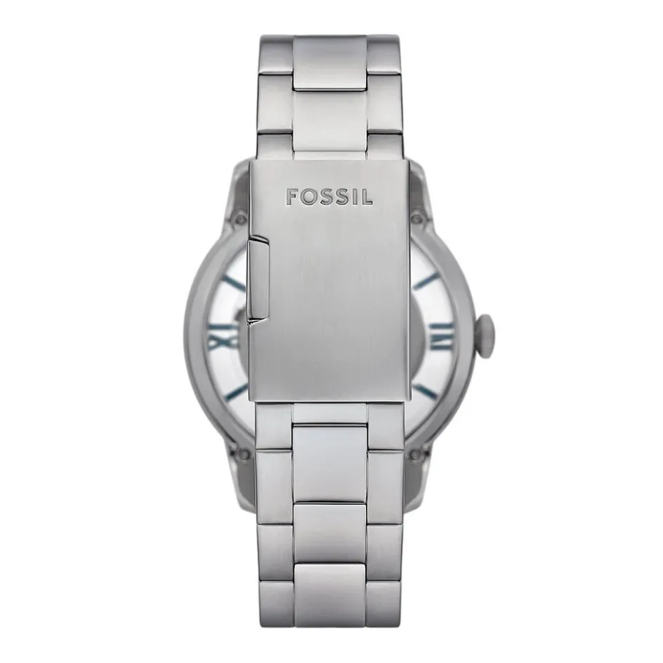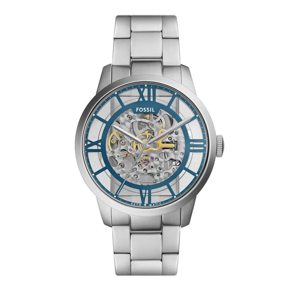 Montre Fossil Townsman Acier Argenté Ronde Automatique 44mm Fond Bleu Bracelet Acier Argenté Me3260