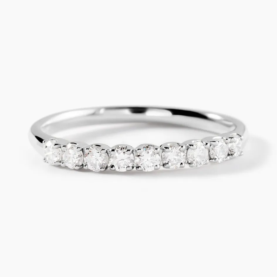 Demi-Alliance Platine 950/1000 Diamants Synthetique 0.41Cts Sertis Griffes