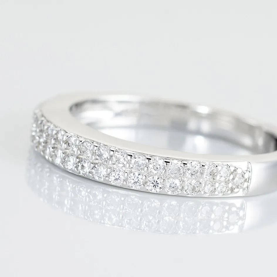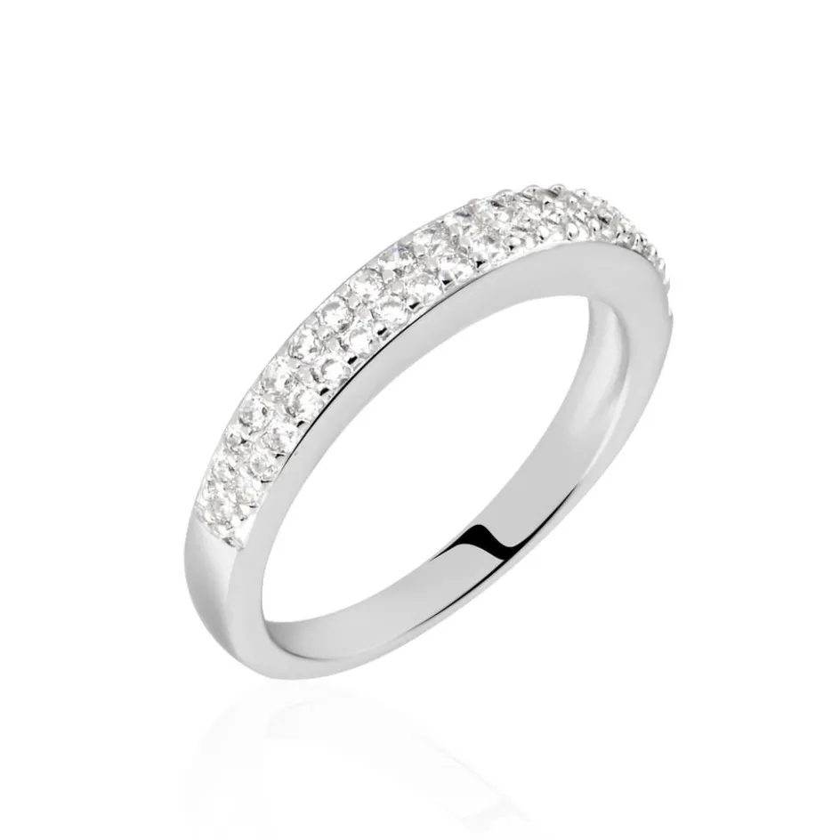 Bague Argent Blanc 925/1000 Ligne Basique Pavage 2 Lignes Oxydes De Zirconium