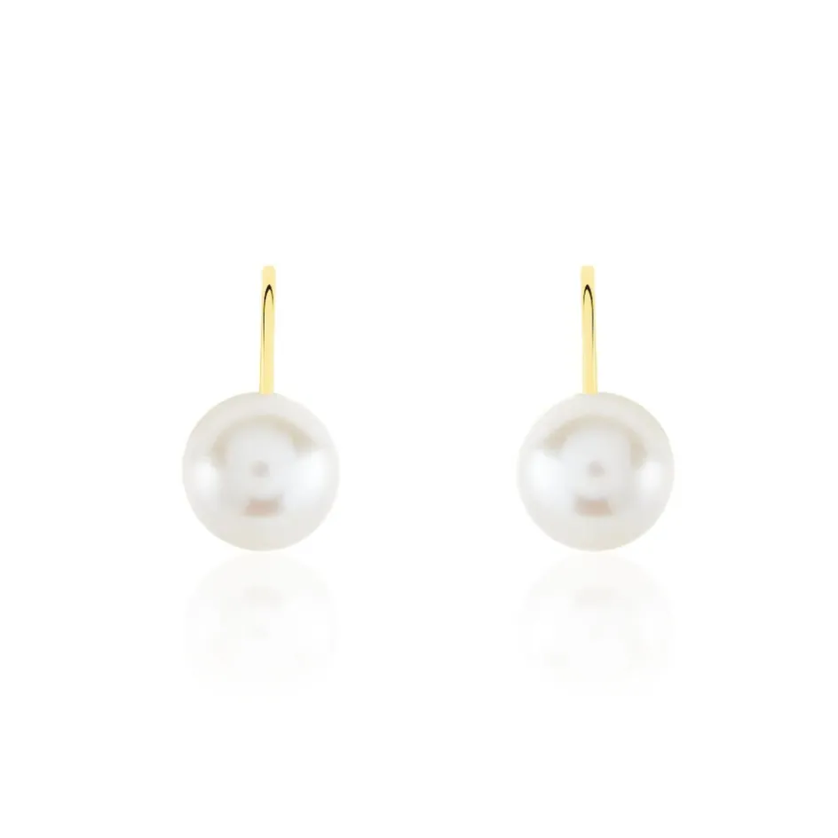 Boucles D’oreilles Or Jaune 375/1000 Dormeuse Perles De Culture Akoya 7/7.5mm Rondes