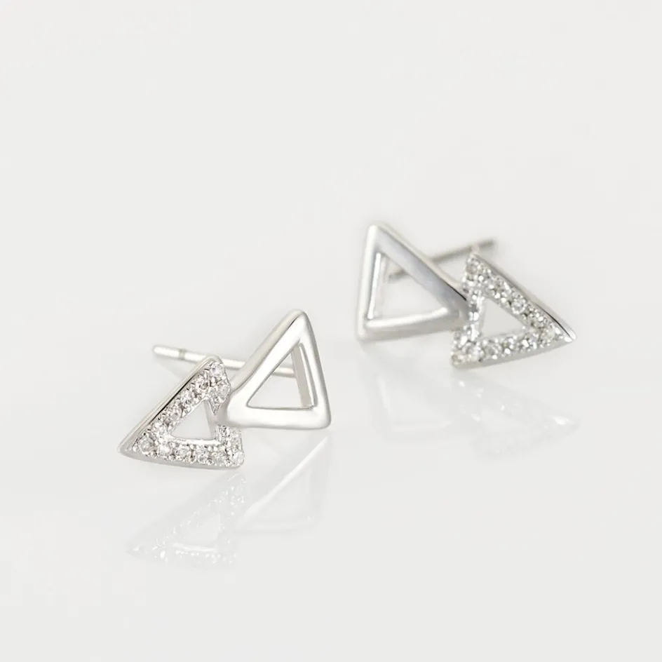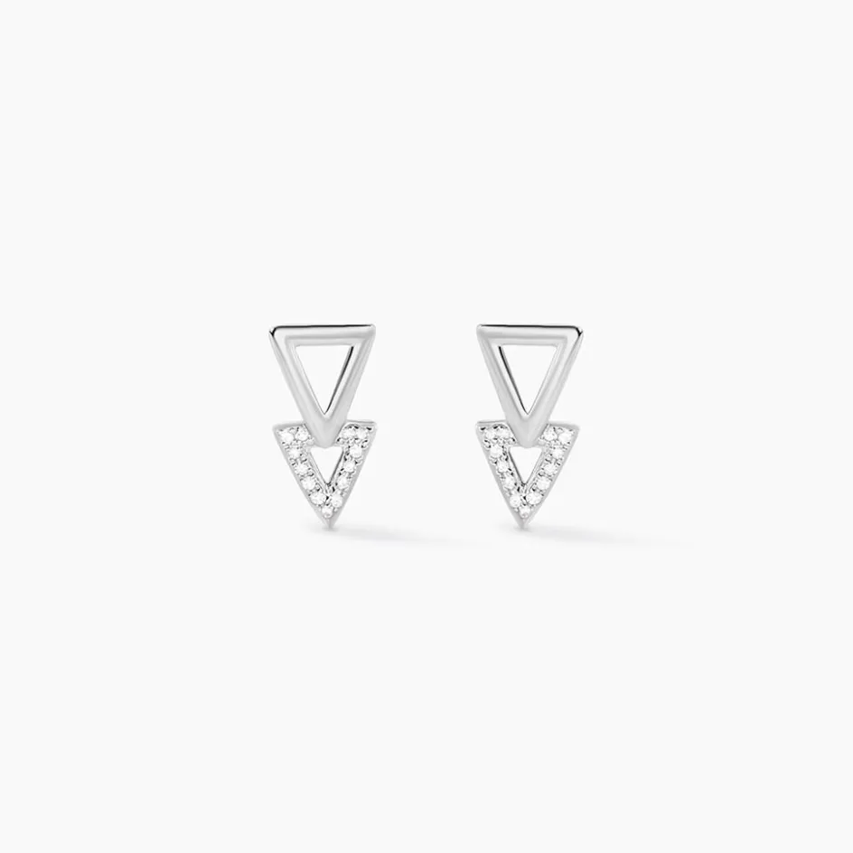 Boucles D’oreilles Or Blanc 375/1000 Double Triangles Diamants