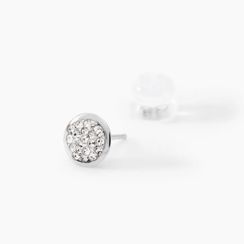 Boucles D’oreilles Puces Or Blanc 375/1000 Cercles Strass