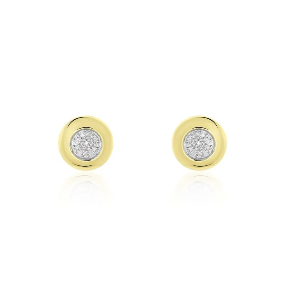 Boucles D’oreilles Puces Or Jaune 375/1000 Pastilles Pavages Diamants