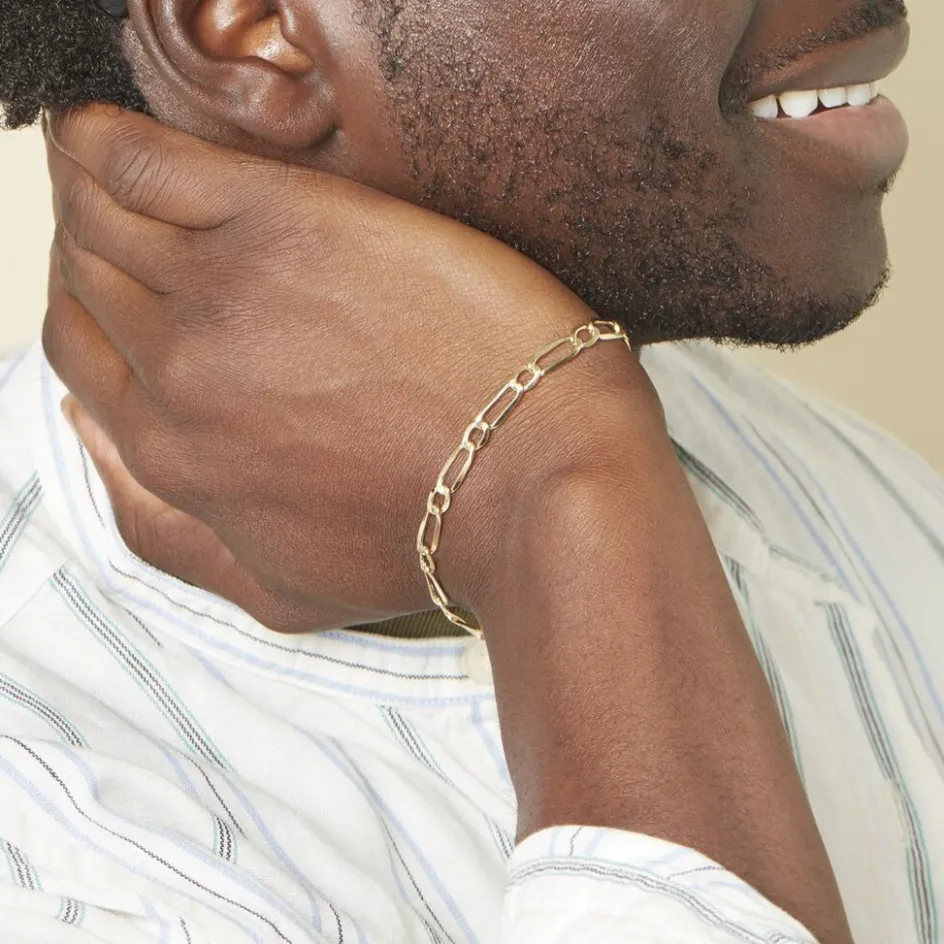 Bracelet Or Jaune 375/1000 Maille Alternee 1/1 Largeur 5.4mm 21cm