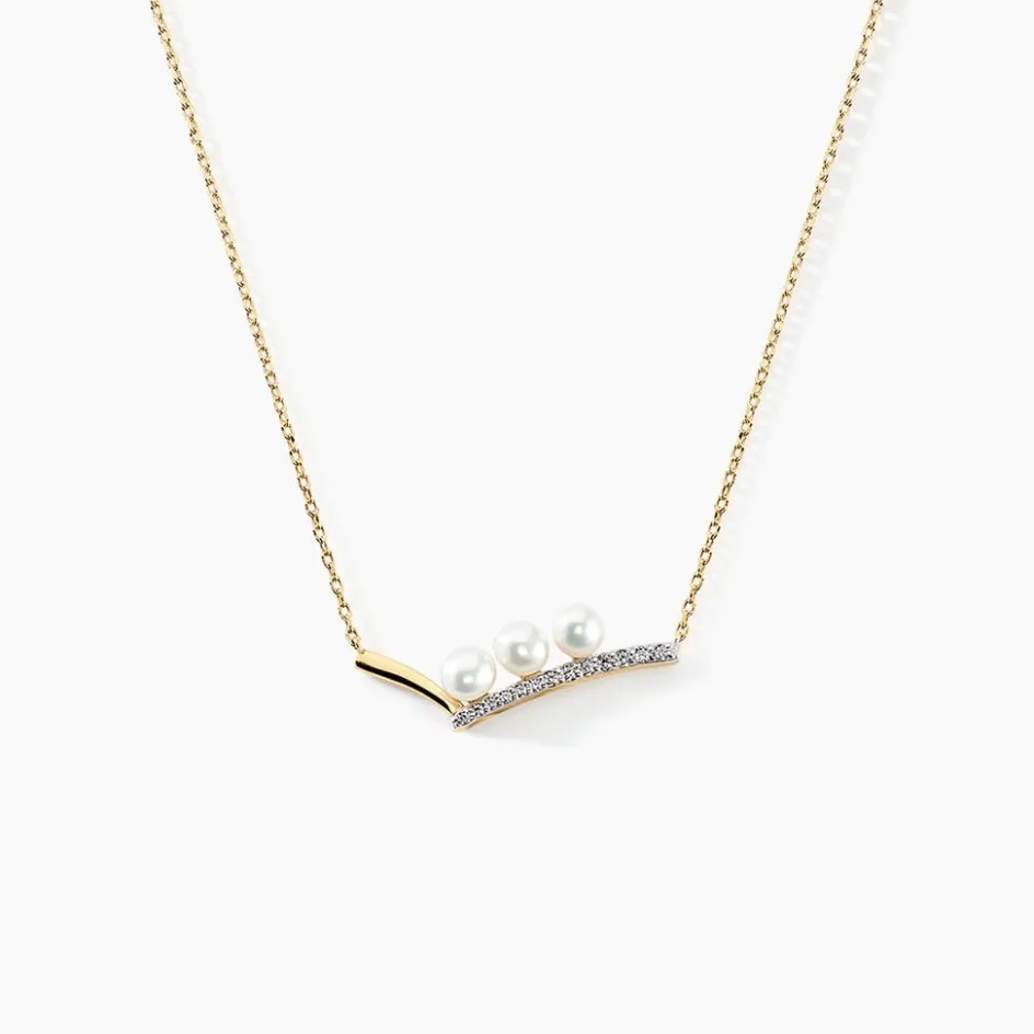 Collier Or Jaune 375/1000 3 Perles De Culture Blanches Bouton 3mm Maille Forçat 40+2cm