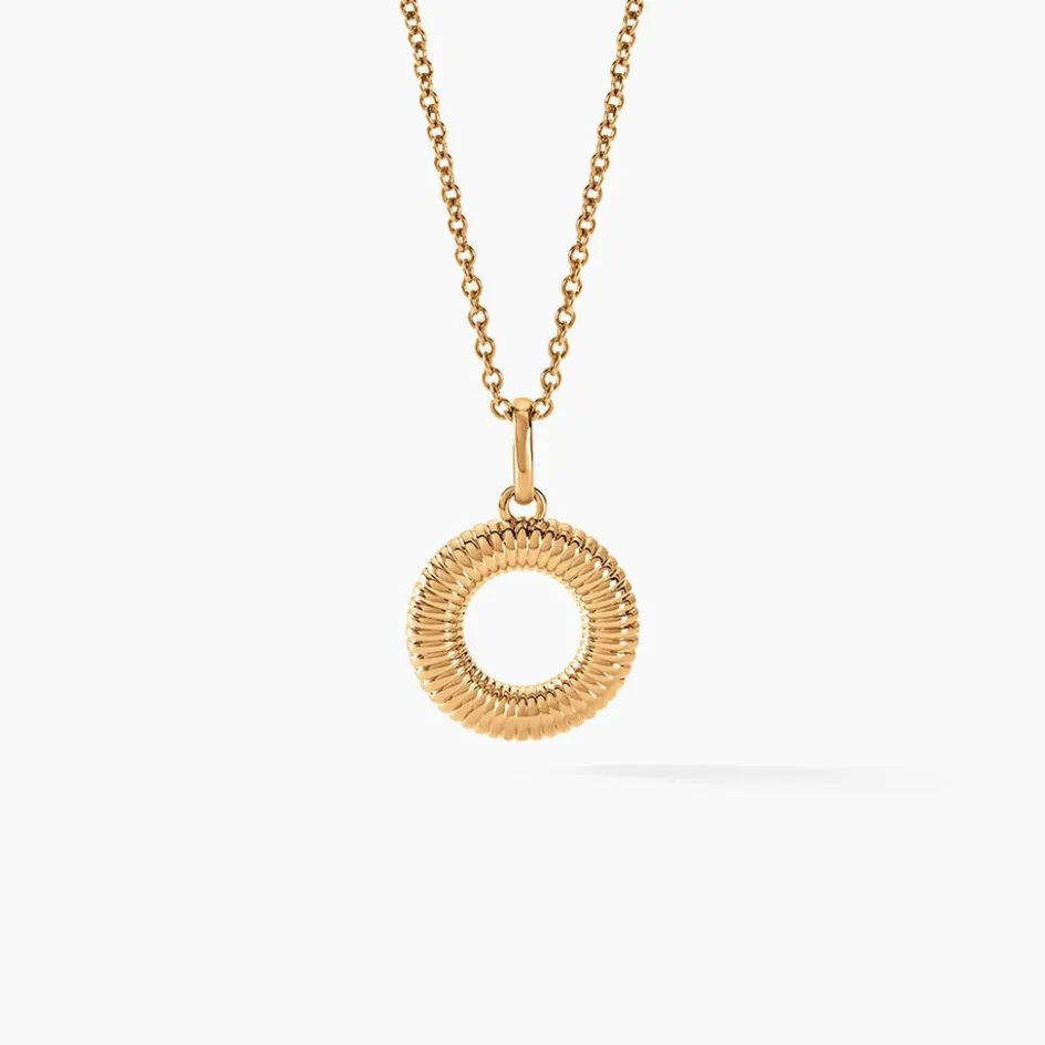 Collier Plaqué Or Jaune Cercle Striées Maille Forcat 42+3cm