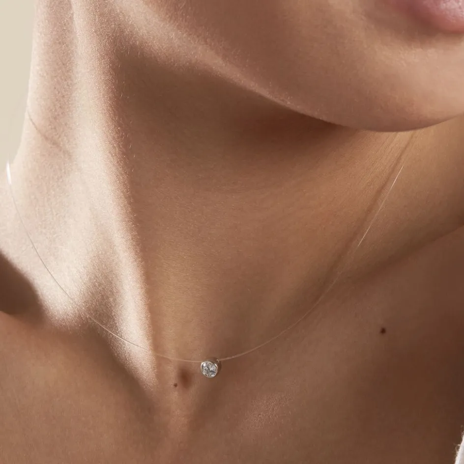 Collier Argent 925/1000 Oxyde De Zirconium Rond Serti Clos 4mm 42cm
