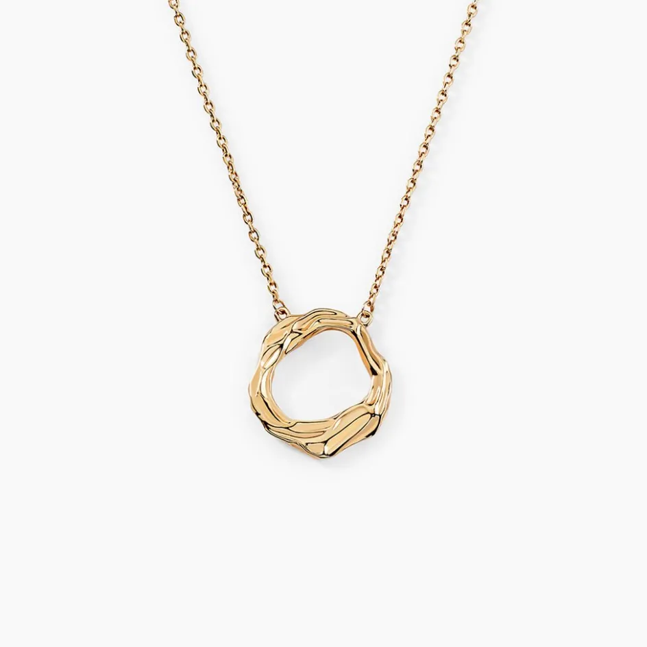 Collier Plaque Or Jaune Cercle Effet Organique Maille Forcat 42+3Cm