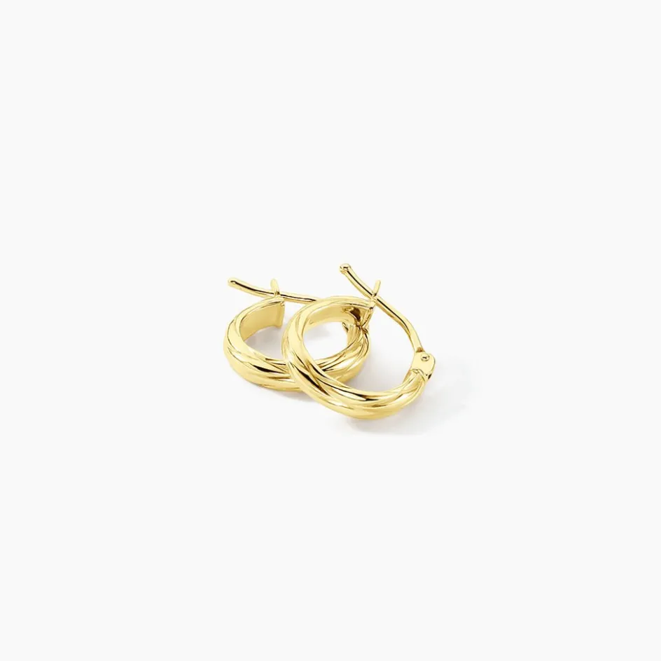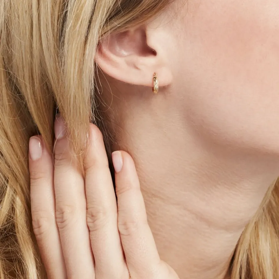 Créoles Or Jaune 375/1000 Fil Demi Jonc Effet Diamanté Largeur 3mm Diamètre 8mm