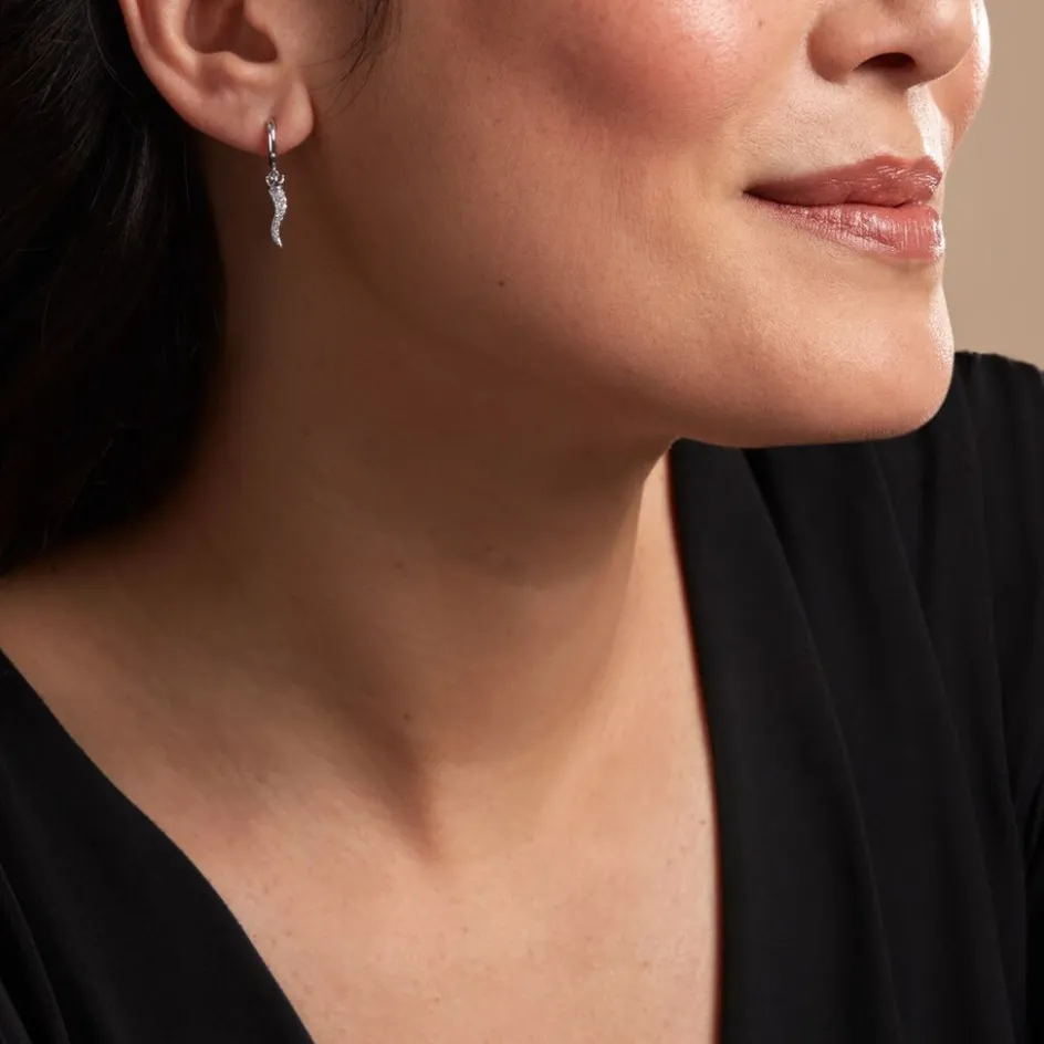 Créoles Argent Blanc 925/1000 Cornes D’abondance Pavage Oxydes De Zirconium Diamètre 6.68mm