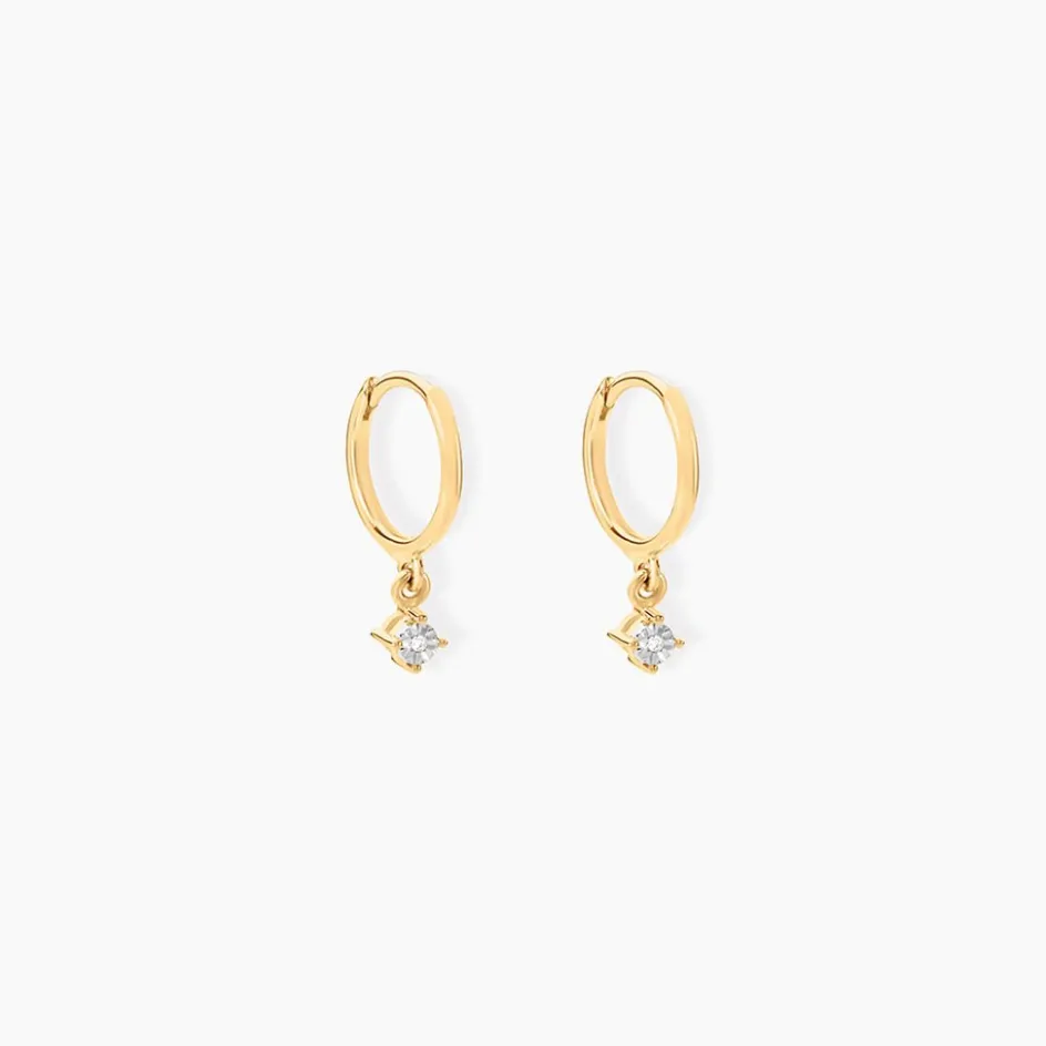 Creoles Or Jaune 375/1000 Ronds Pendants Diamants Diametre 8mm