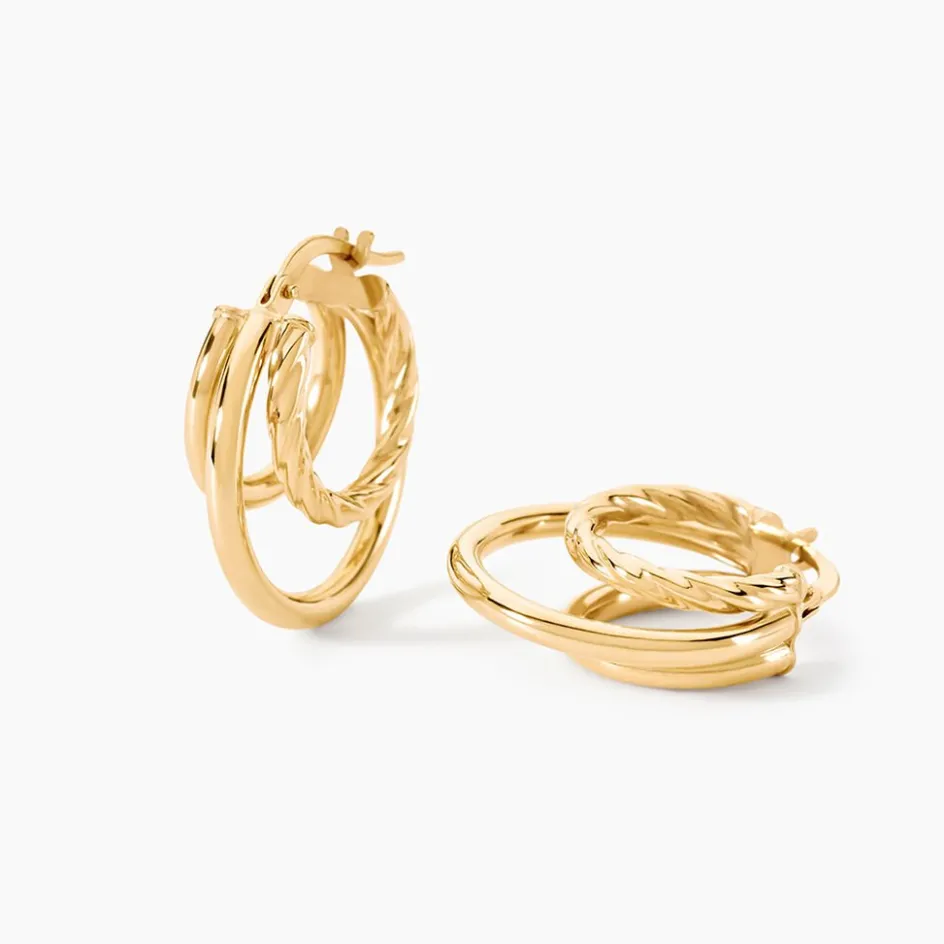 Créoles Or Jaune 375/1000 Triple Fils Dont 1 Torsade Diametre 15Mm