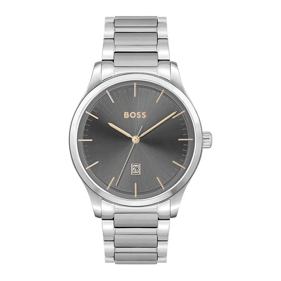 Montre Boss Reason Acier Ronde Quartz 43mm Fond Gris Bracelet Acier 1513979
