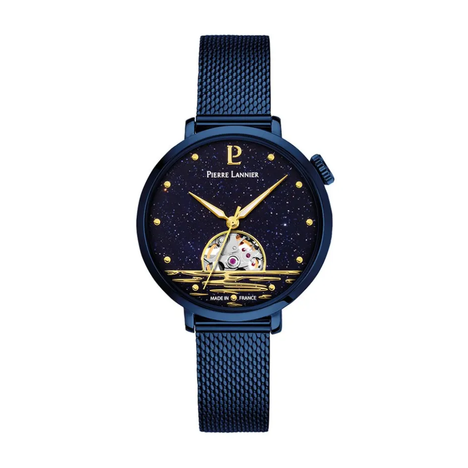 Montre Pierre Lannier Australe Acier Bleu Ronde Automatique 35mm Fond Bleu Bracelet Acier Inoxydable Bleu Milanais 148h866