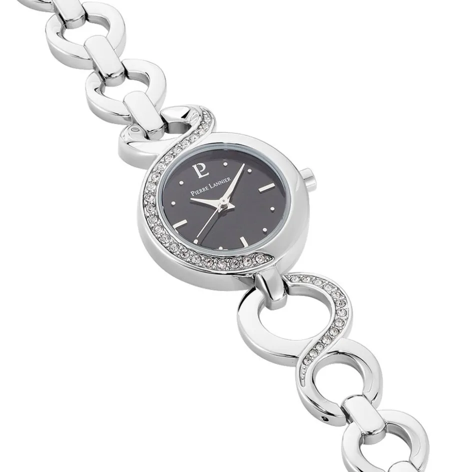 Montre Pierre Lannier Elegance Seduction Acier Blanc Ronde Quartz 24mm Fond Noir Bracelet Acier Blanc 102m631