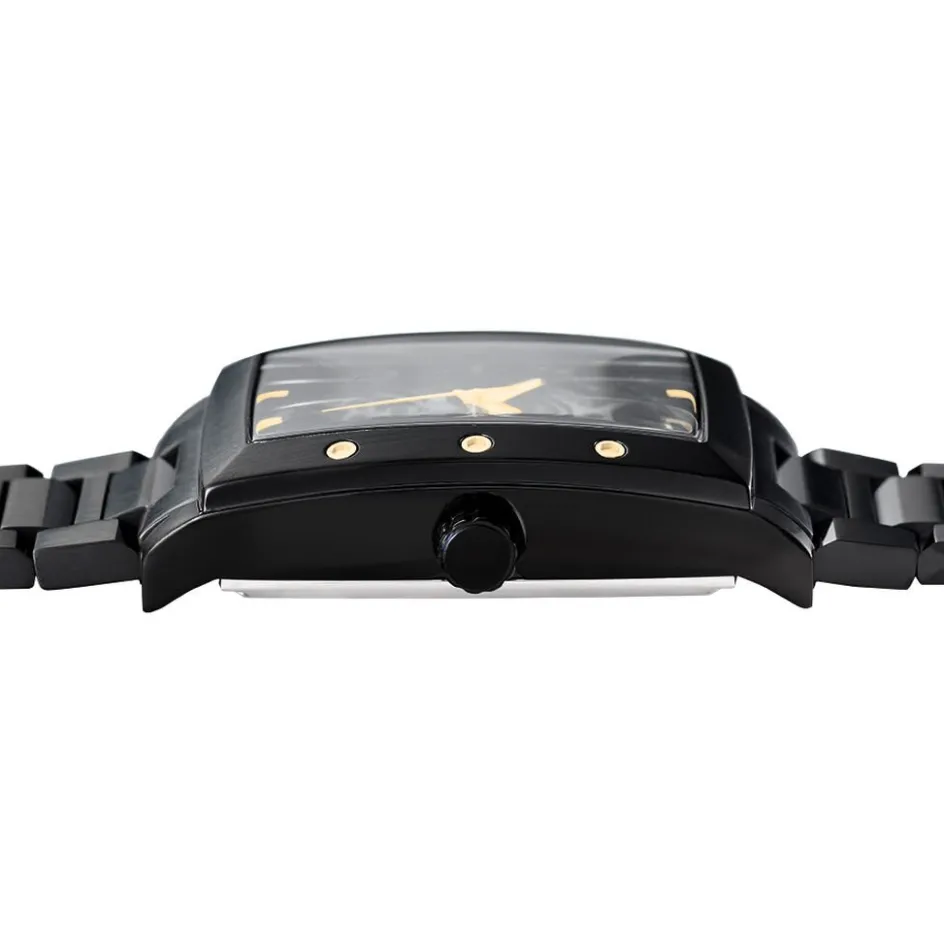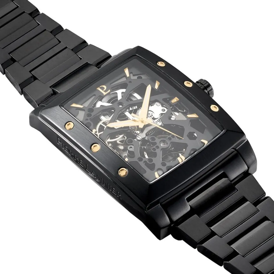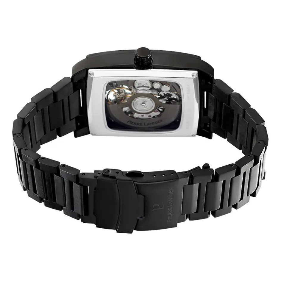 Montre Pierre Lannier Hector Acier Noir Tonneau Automatique 42.6×26.6mm Fond Noir Bracelet Acier Noir 340a439