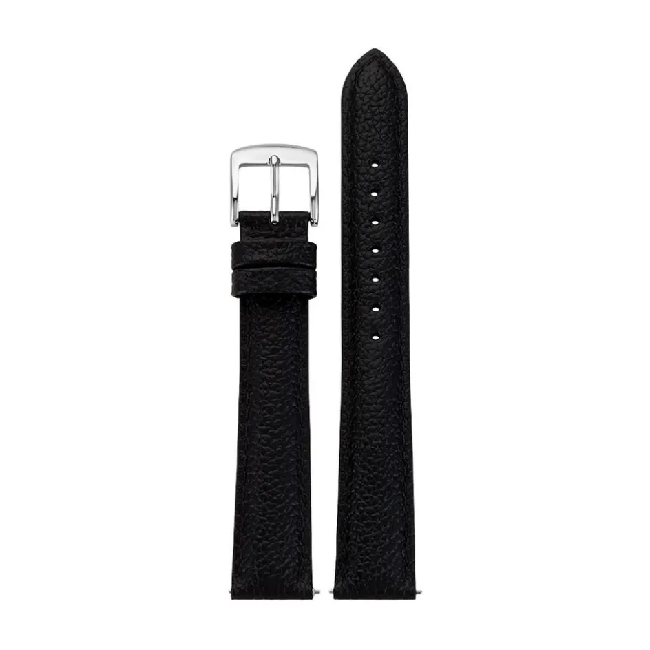 Bracelet De Montre Rochet Cuir De Veau Grainé Noir Boucle Argentée 16/14mm