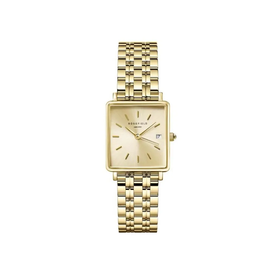 Montre Rosefield Boxy Xs Acier Doré Carré Quartz 22×24 Mm Fond Champagne Bracelet Acier Doré Qcgsg-q048