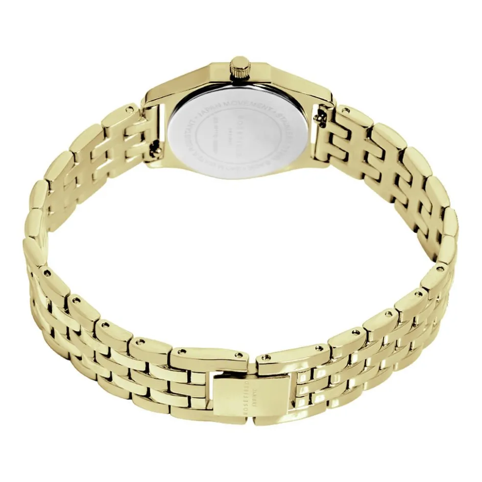 Montre Rosefield Gemme Acier Doré Géométrique Quartz 21.5×27.5mm Fond Blanc Bracelet Acier Doré Gwgsg-g02