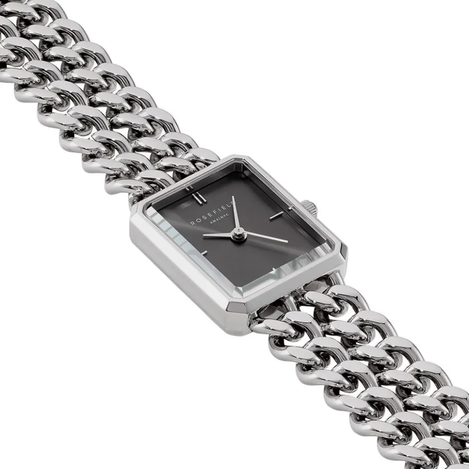 Montre Rosefield Studio Acier Argenté Rectangulaire Quartz 19.5x24mm Fond Noir Bracelet Acier Argenté Sgsss-o78