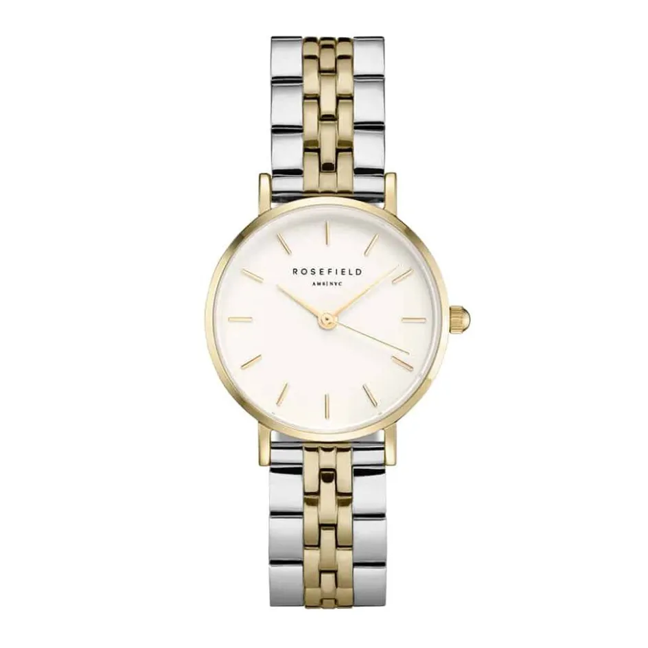 Montre Rosefield Small Edit Acier Doré Ronde Quartz 26mm Fond Blanc Bracelet Acier Bicolore 26sgd-269