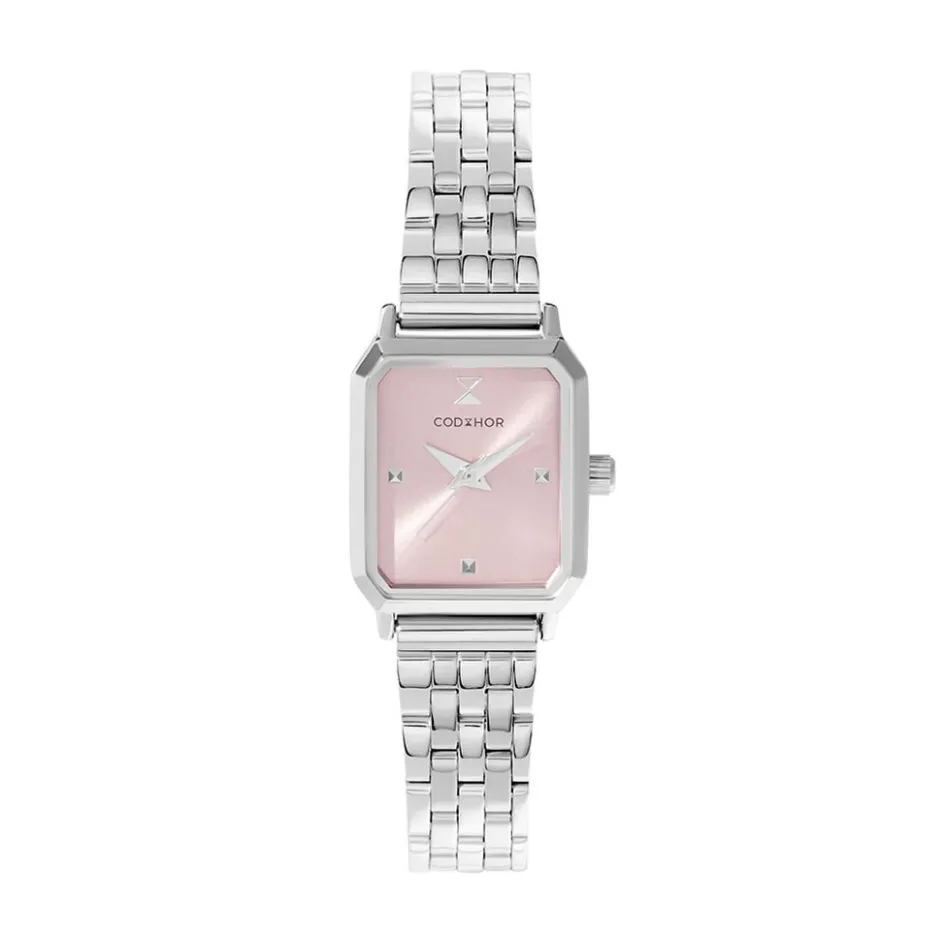 Montre Codhor Hortense Alliage Argenté Quartz Carre 20mm Fond Rose Bracelet Acier Argenté Ch.5420la/01m