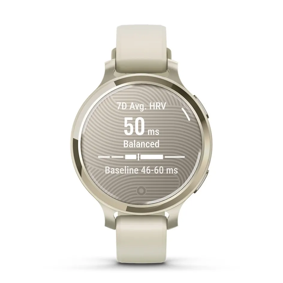 Montre Connectee Garmin Lily 2 Active Aluminium Dore Ronde Multifonction 38mm Fond Dore Bracelet Silicone Beige 010-02891-00