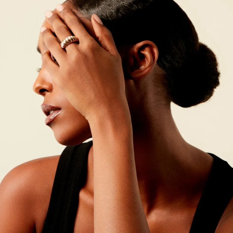 Bague Plaqué Or Jaune Bombée Effet Torsadée