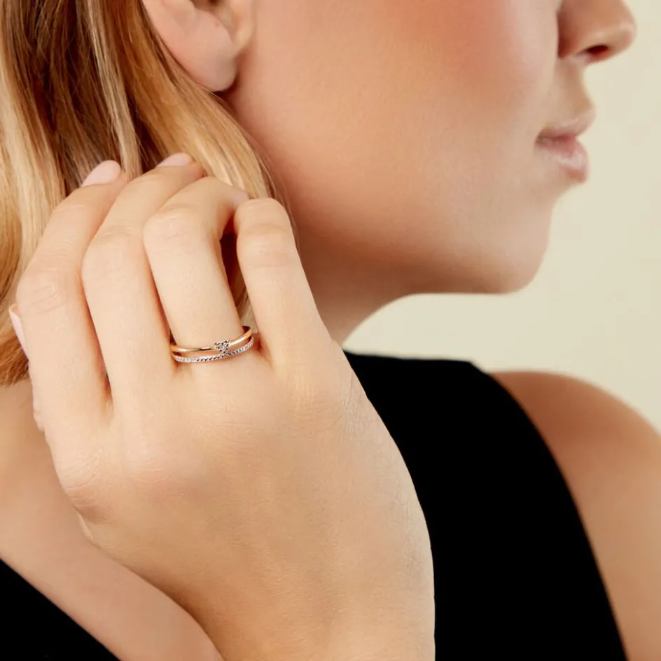 Bague Or Jaune 375/1000 C艙ur Trilogie Diamant Illusion