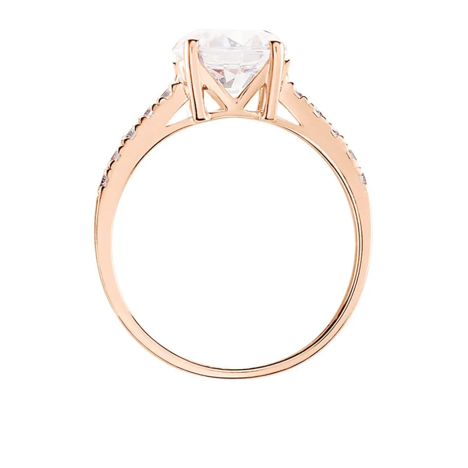 Bague Solitaire Accompagné Or Rose 375/1000 Ronde Oxydes De Zirconium 3.43 Cts Serti Griffes