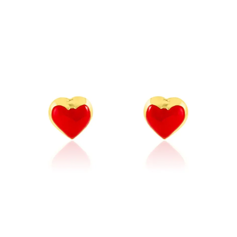 Boucles D’oreilles Or Jaune 375/1000 C艙urs Smalto Rouge