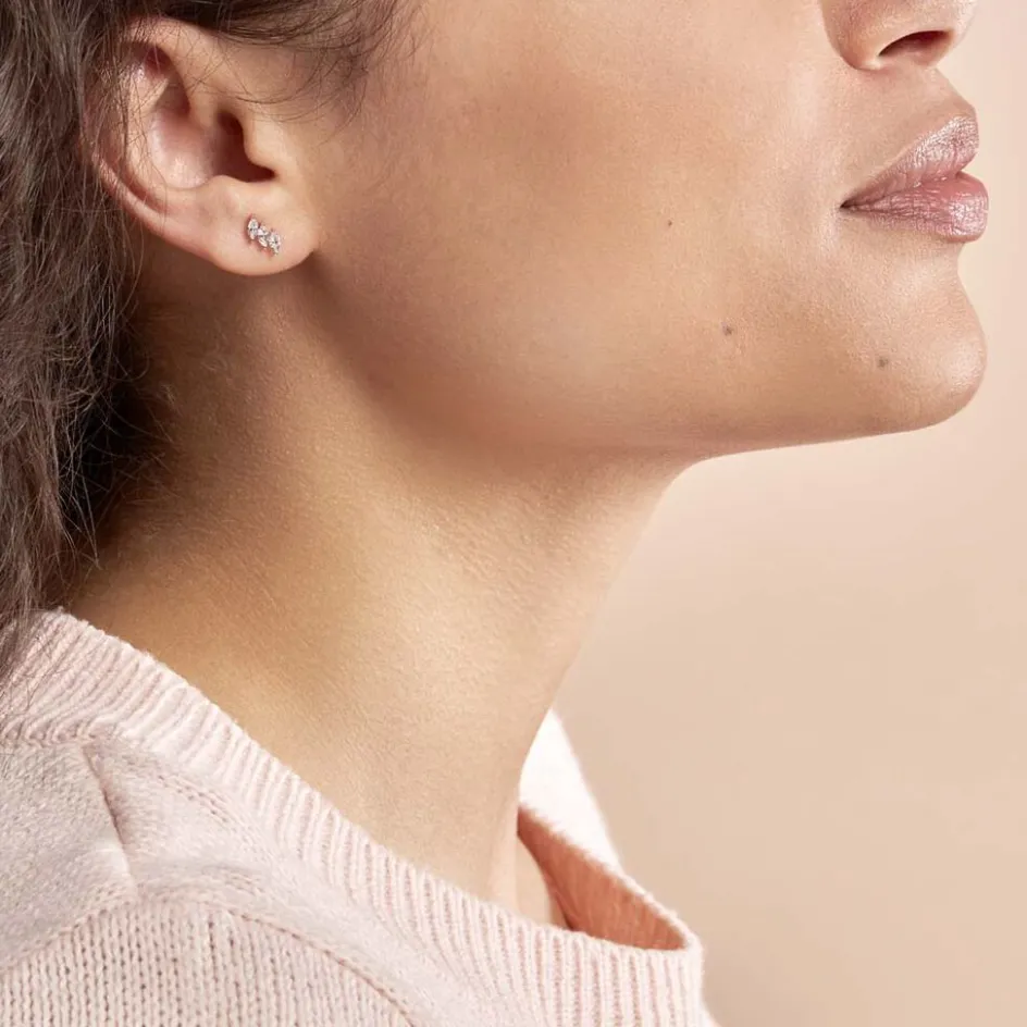 Boucles D’oreilles Or Rose 375/1000 Puces 3 Oxydes De Zirconium Forme Marquise