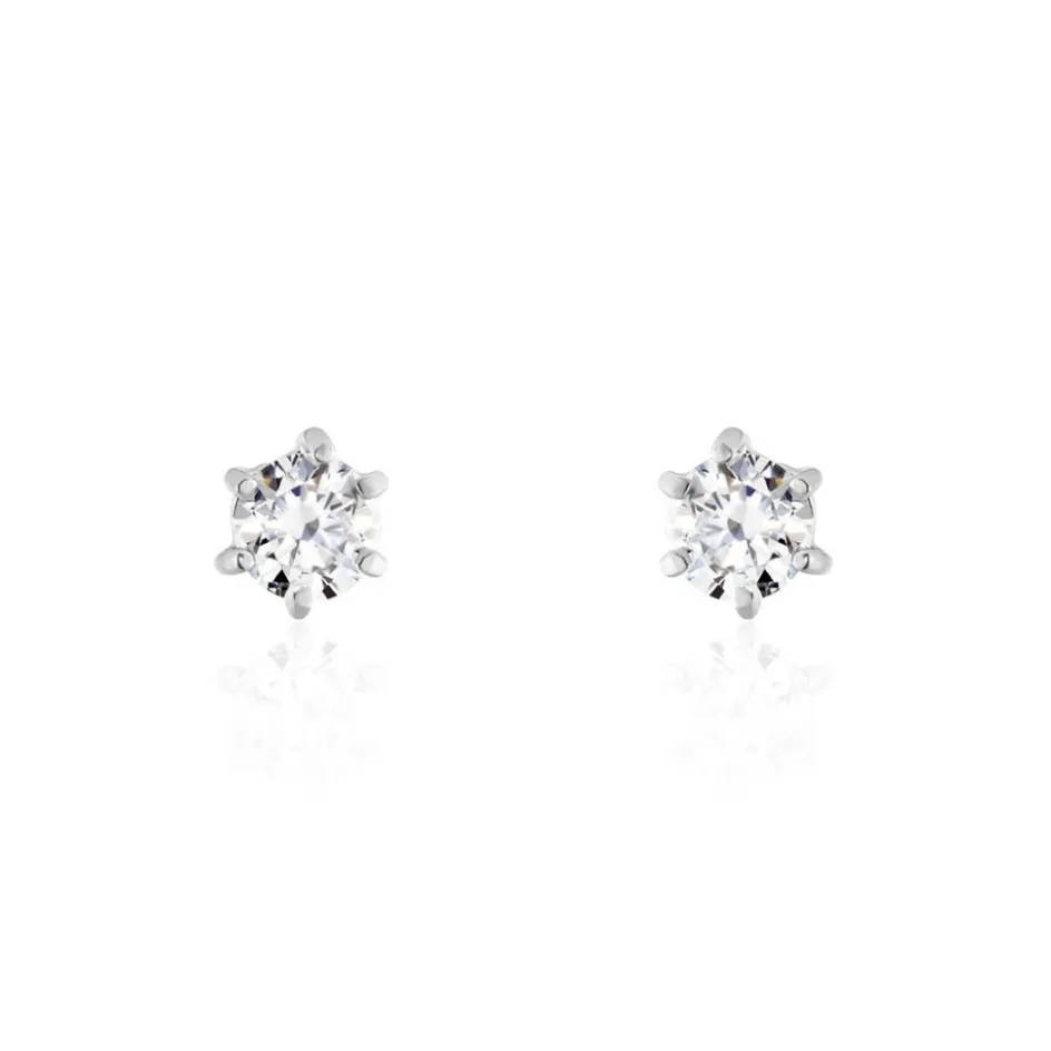 Boucles D’oreilles Puces Argent Blanc 925/1000 Oxydes De Zirconium 6 Griffes 4 Mm