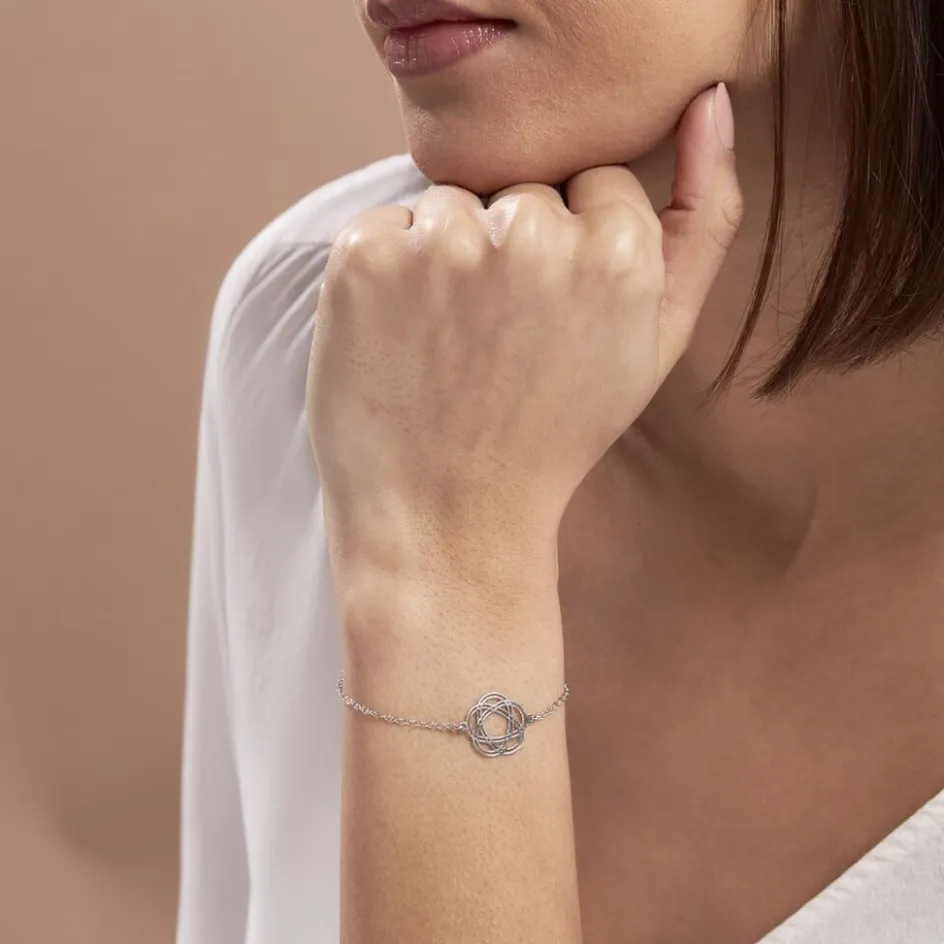 Bracelet Argent Blanc 925/1000 Fleur Ajouree Maille Forcat 19cm