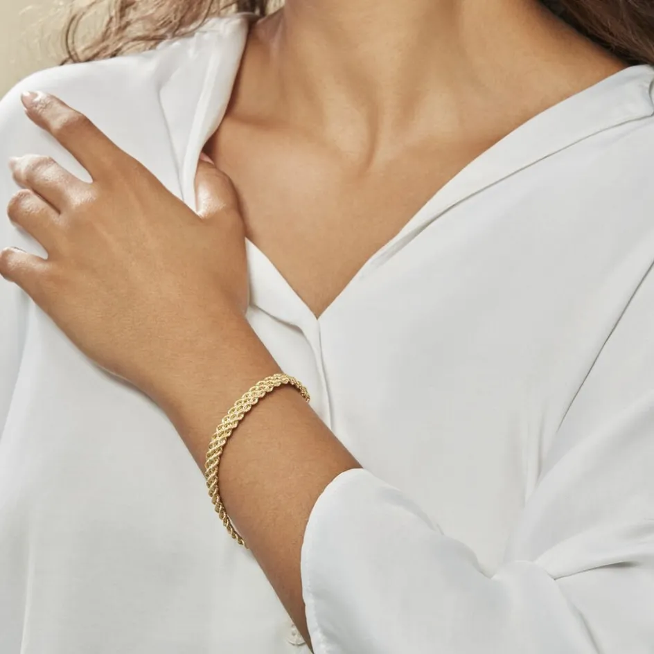 Bracelet Or Jaune 375/1000 Maille Corde 3 Rangs 2.7mm 20cm
