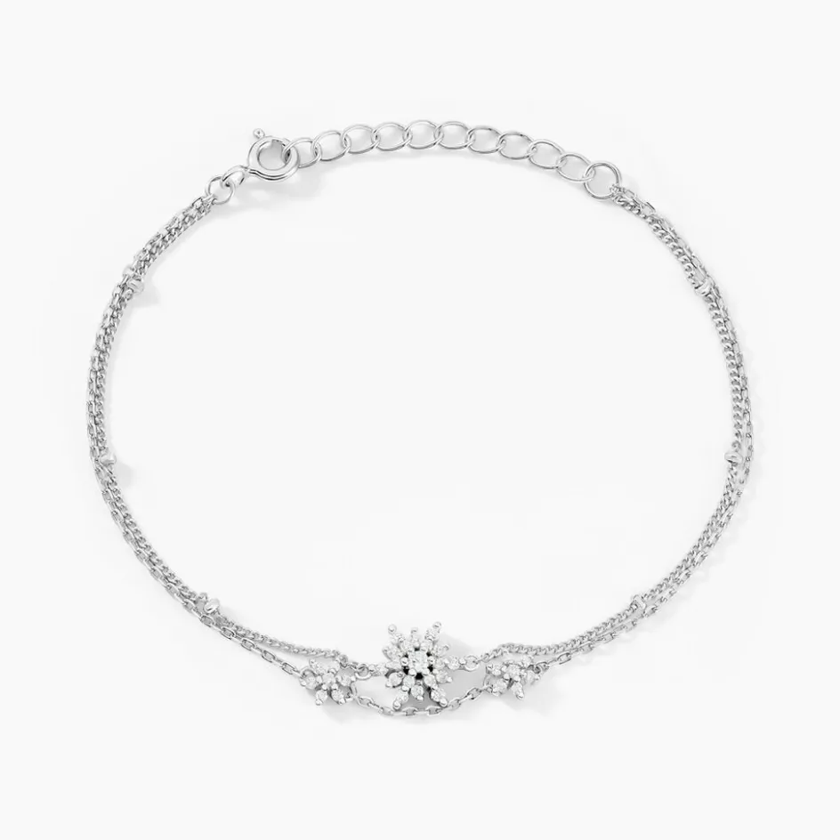 Bracelet Argent 925/1000 leila Motif Flocon Oxydes De Zirconium 18.5cm
