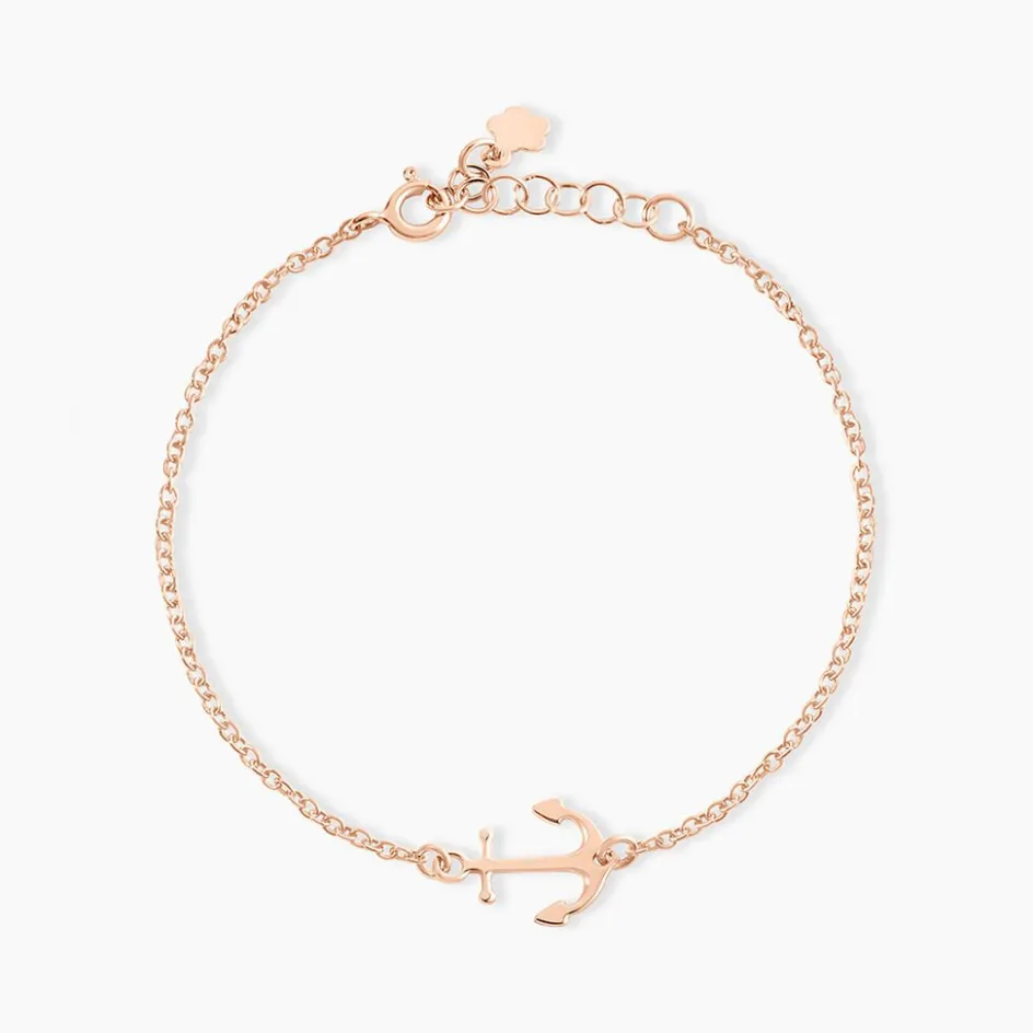 Bracelet Argent Rose 925/1000 Ancre Marine Maille Forcat 18cm