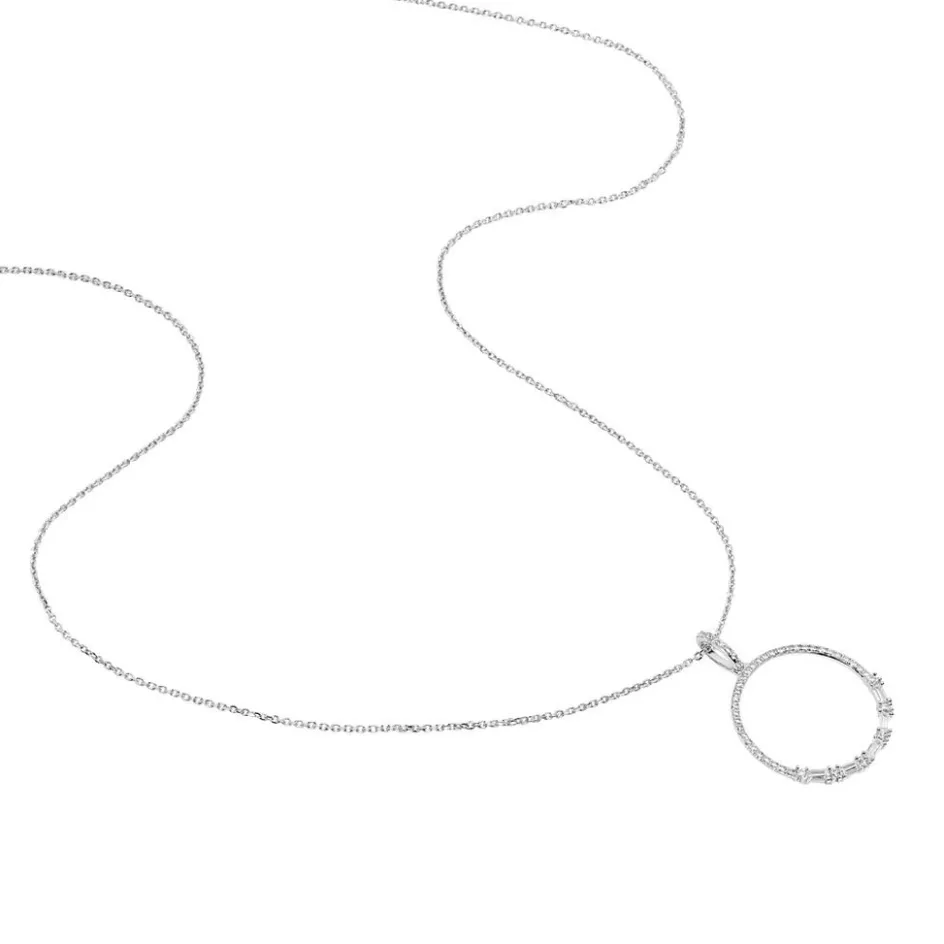 Collier Or Blanc 375/1000 Cercle Ajoure Oxydes De Zirconium Baguettes Et Ronds 42cm