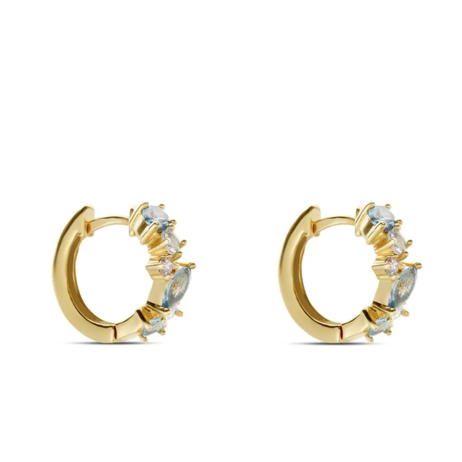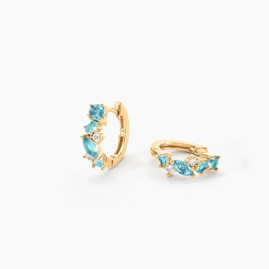 Creoles Plaque Or Jaune Multi Pierres Artificielles Bleues Diametre 15mm 1.5mm