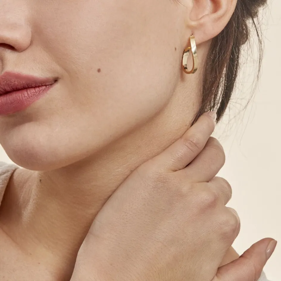 Créoles Or Jaune 375/1000 Ovales Forme Vague Fil Carré Lisse Largeur 3mm Diamètre 22x14mm
