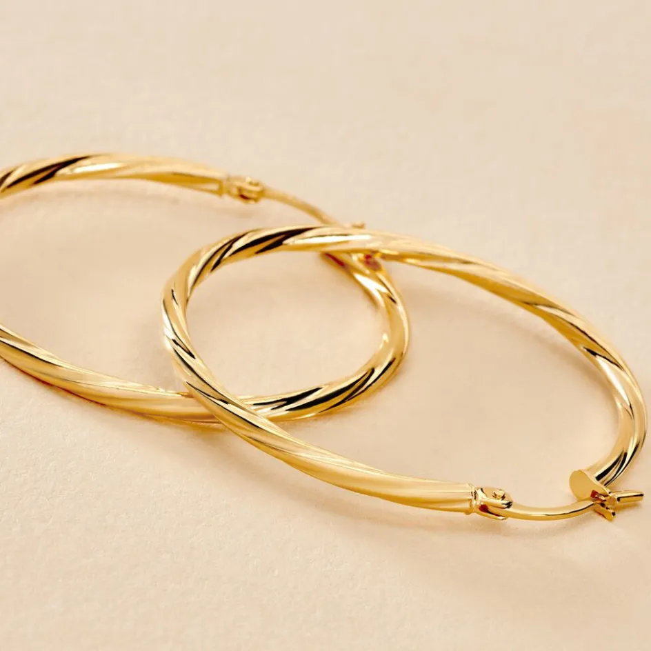 Créoles Or Jaune 750/1000 Fil Rond Torsadé Largeur 2mm Diamètre 30mm
