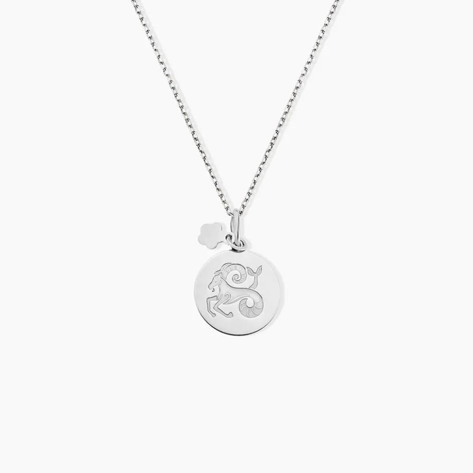 Pendentif Argent Blanc 925/1000 Medaille Ronde Motif Capricorne