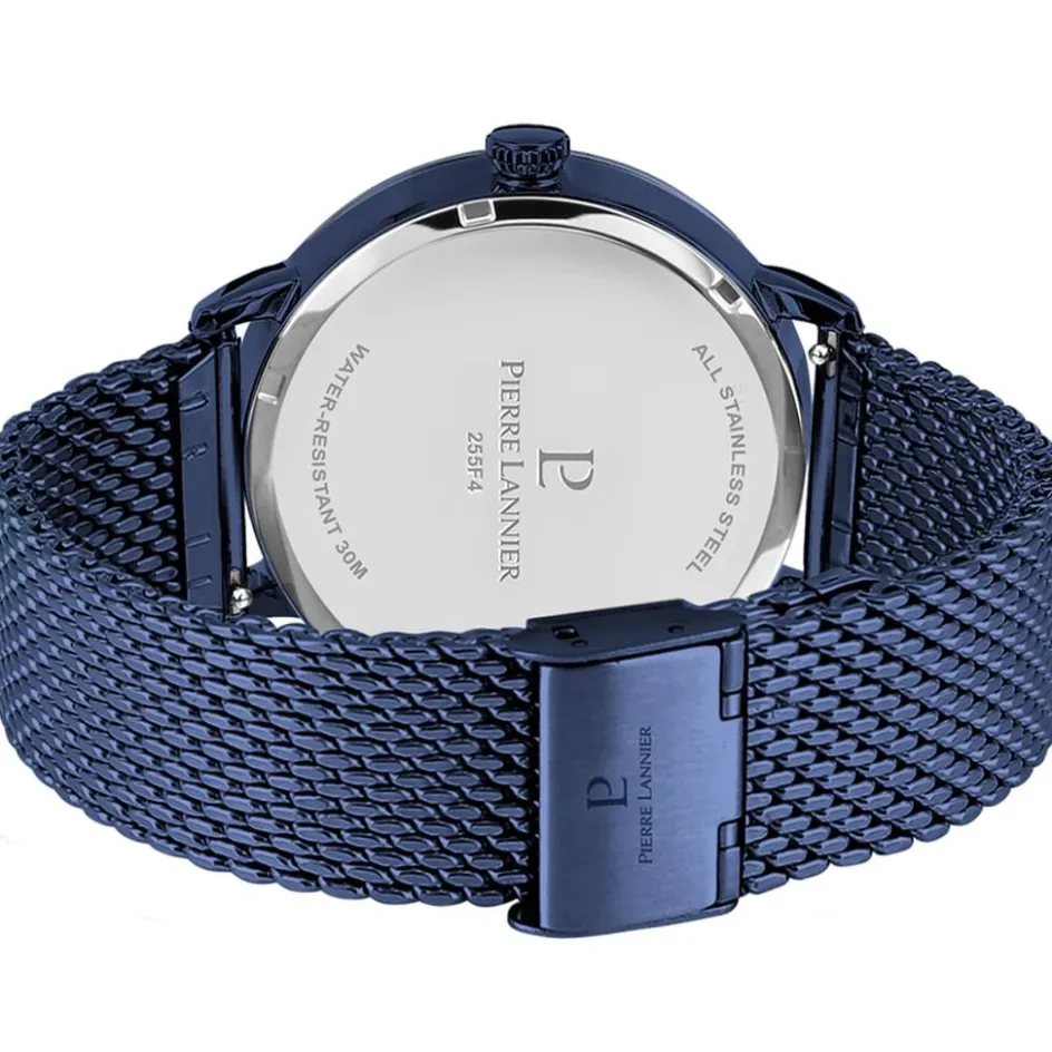 Montre Pierre Lannier Collection Beaucour Acier Bleu Ronde Quartz 42mm Fond Bleu Bracelet Acier Bleu 255f466