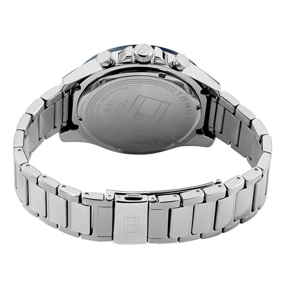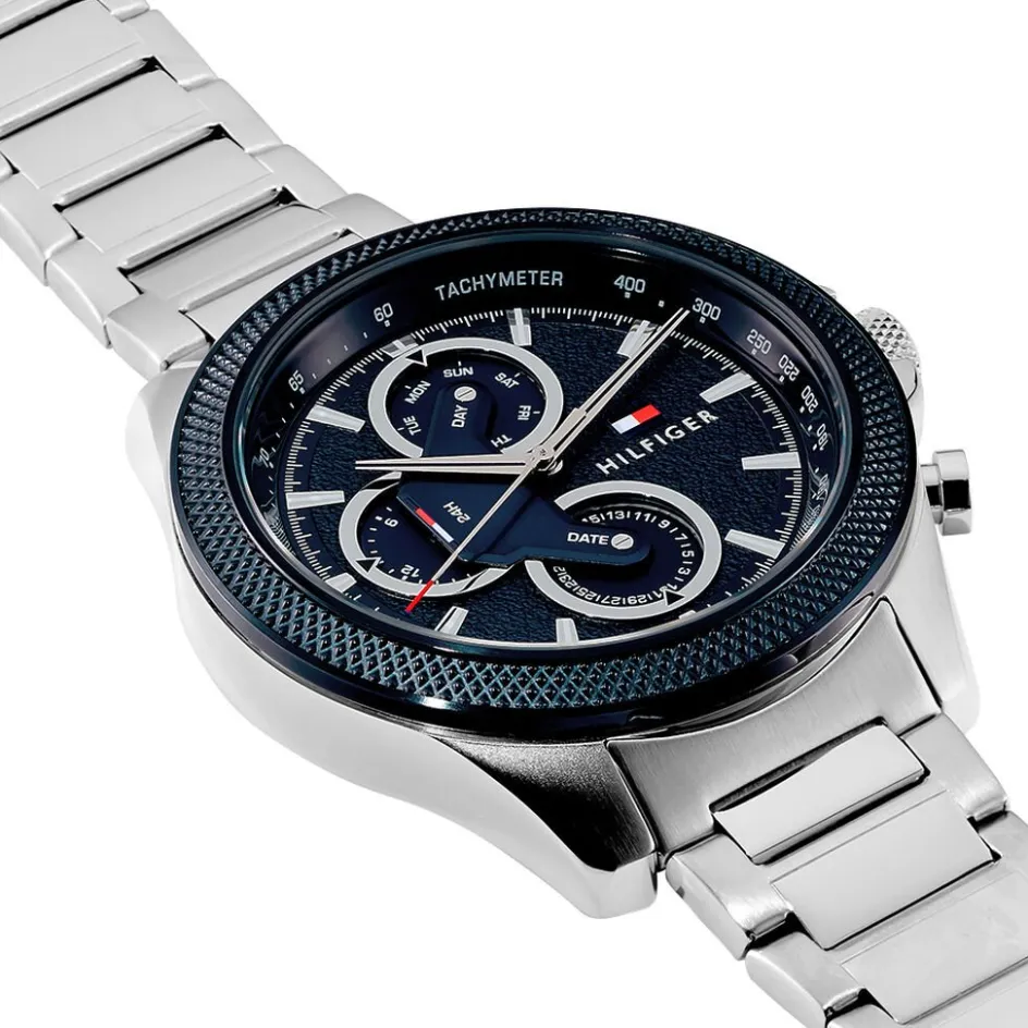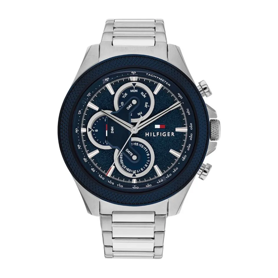 Montre Tommy Hilfiger Clark Acier Argente Rond Quartz Multifonction 46mm Fond Bleu Bracelet Acier Argente 1792080