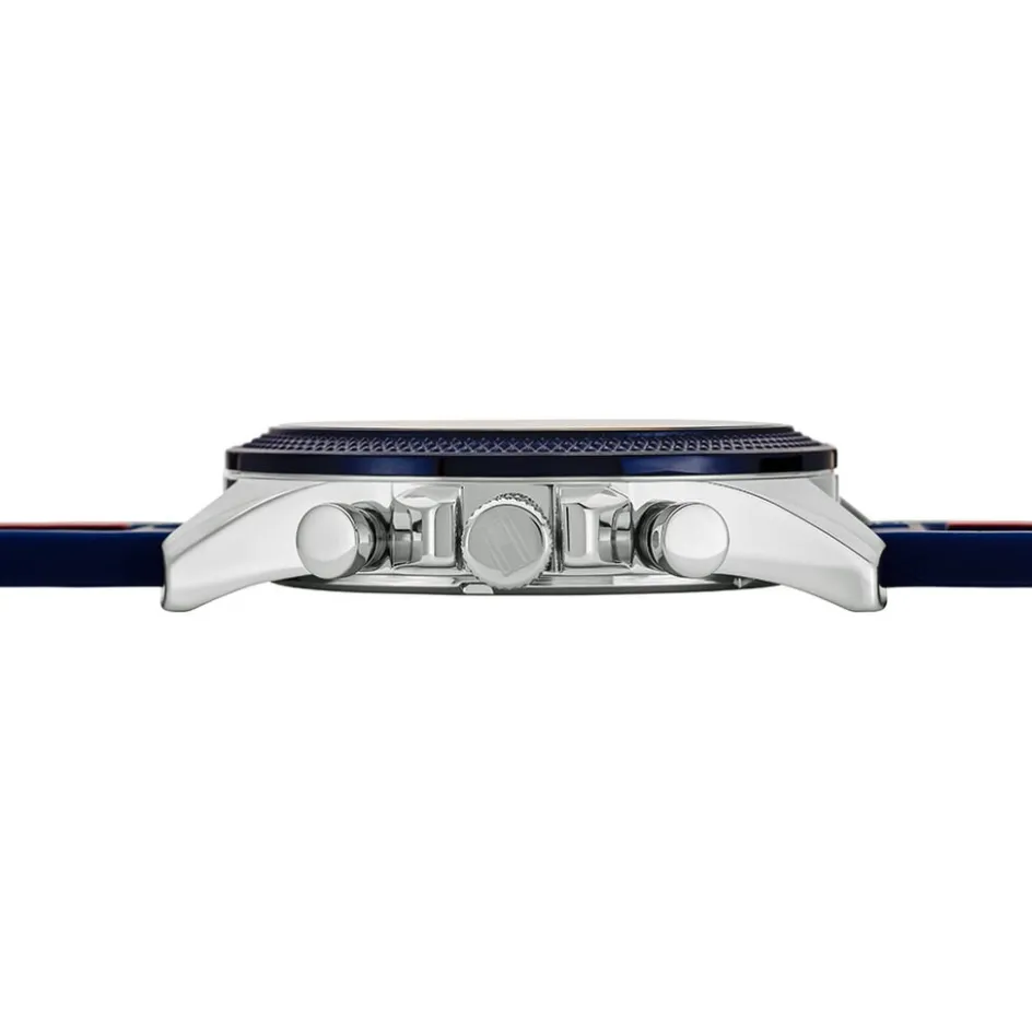 Montre Tommy Hilfiger Clark Acier Argente Rond Quartz Multifonction 46mm Fond Bleu Lunette Bleue Bracelet Silicone Bleu 1792083