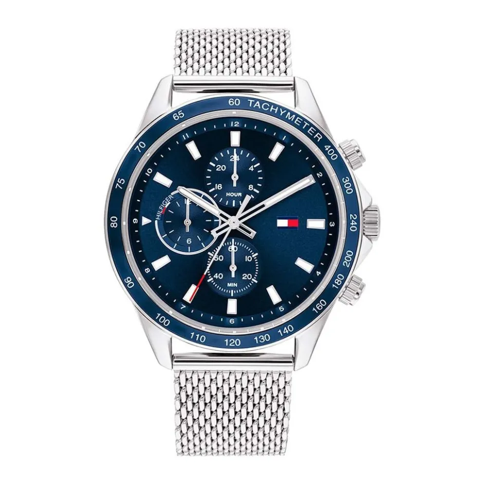 Montre Tommy Hilfiger Miles Acier Ronde Quartz 44mm Fond Bleu Bracelet Acier Maille Milanaise 1792018