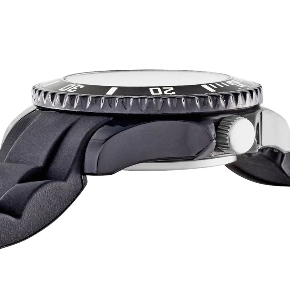 Montre Upp Aria Plastique Noir Ronde Quartz 29mm Lunette Tournante Noire Fond Blanc Bracelet Silicone Noir Cl246
