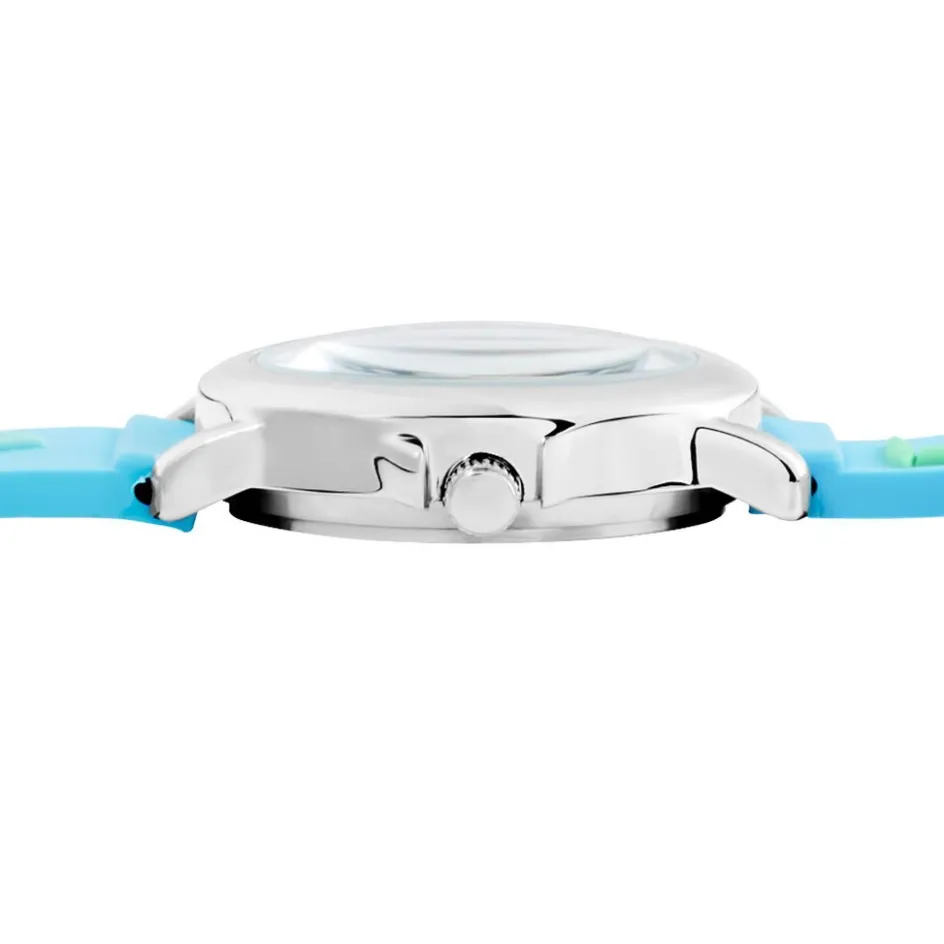 Montre Upp Fuzzy Alliage Argenté Ronde Quartz 27mm Fond Bleu Et Blanc Bracelet Silicone Bleu Motif Surf Cl260