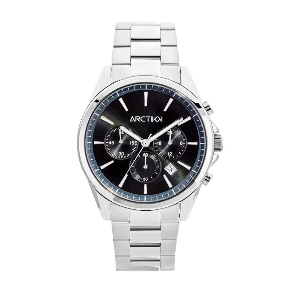 Montre Arctik Aube Acier Argente Ronde Quartz Chronographe 43mm Fond Noir Bracelet Acier Argente Wbc0135-001